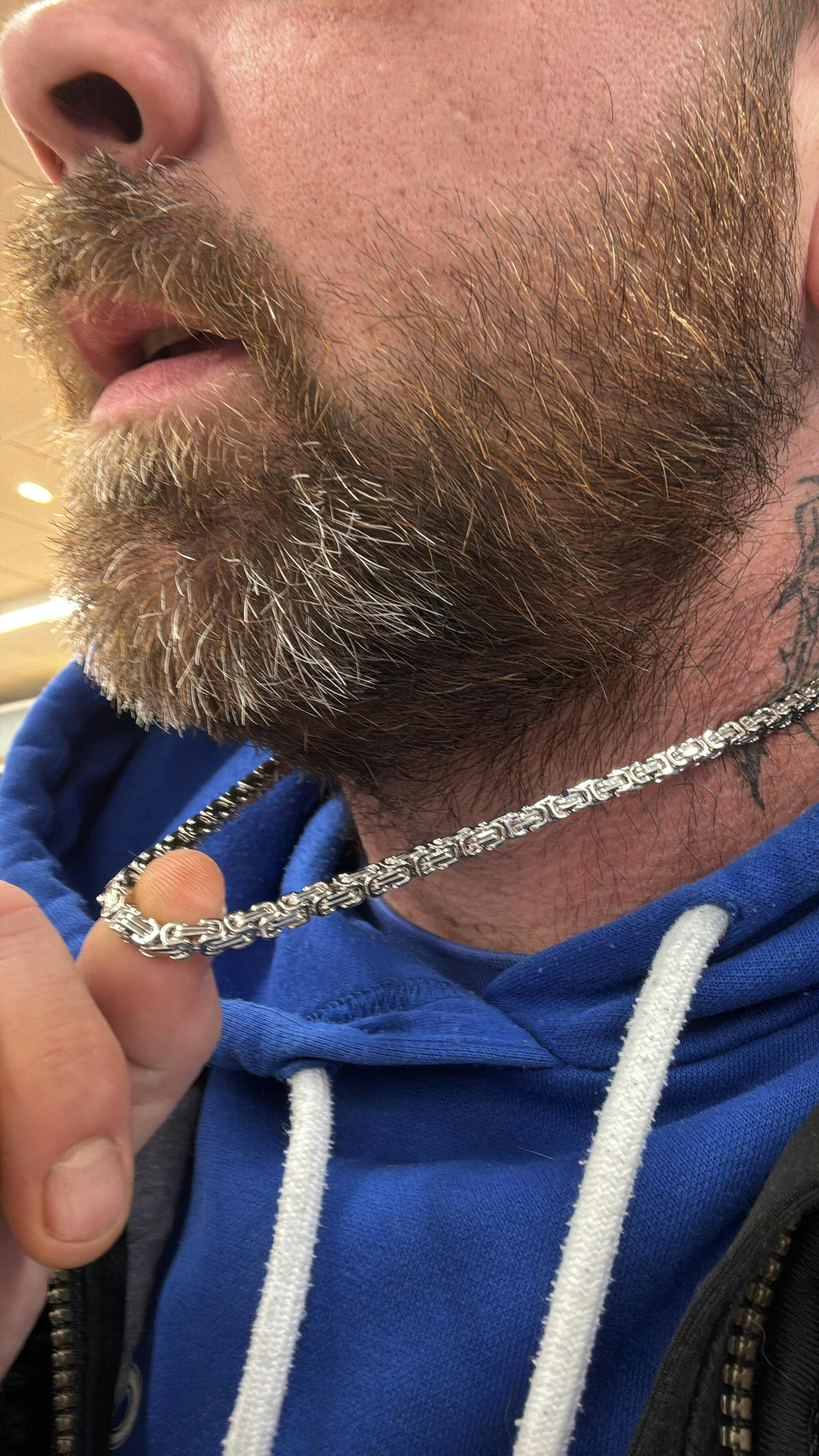 Chain inroyal weave4mm wide, this unique blend of subtlety, prestige, and jewelry tradition is a true masterpiece. Inspired by jewelry worn at European courts, this design captivates with its dense, intricate link structure, symbolizing continuity, strength, and order.white goldgives it a cool elegance, anddrawer clasp decorated with zircons and a logoIt completes the look with a luxurious touch. A perfect choice for those who value understated glamour and refined form in everyday or formal styling.