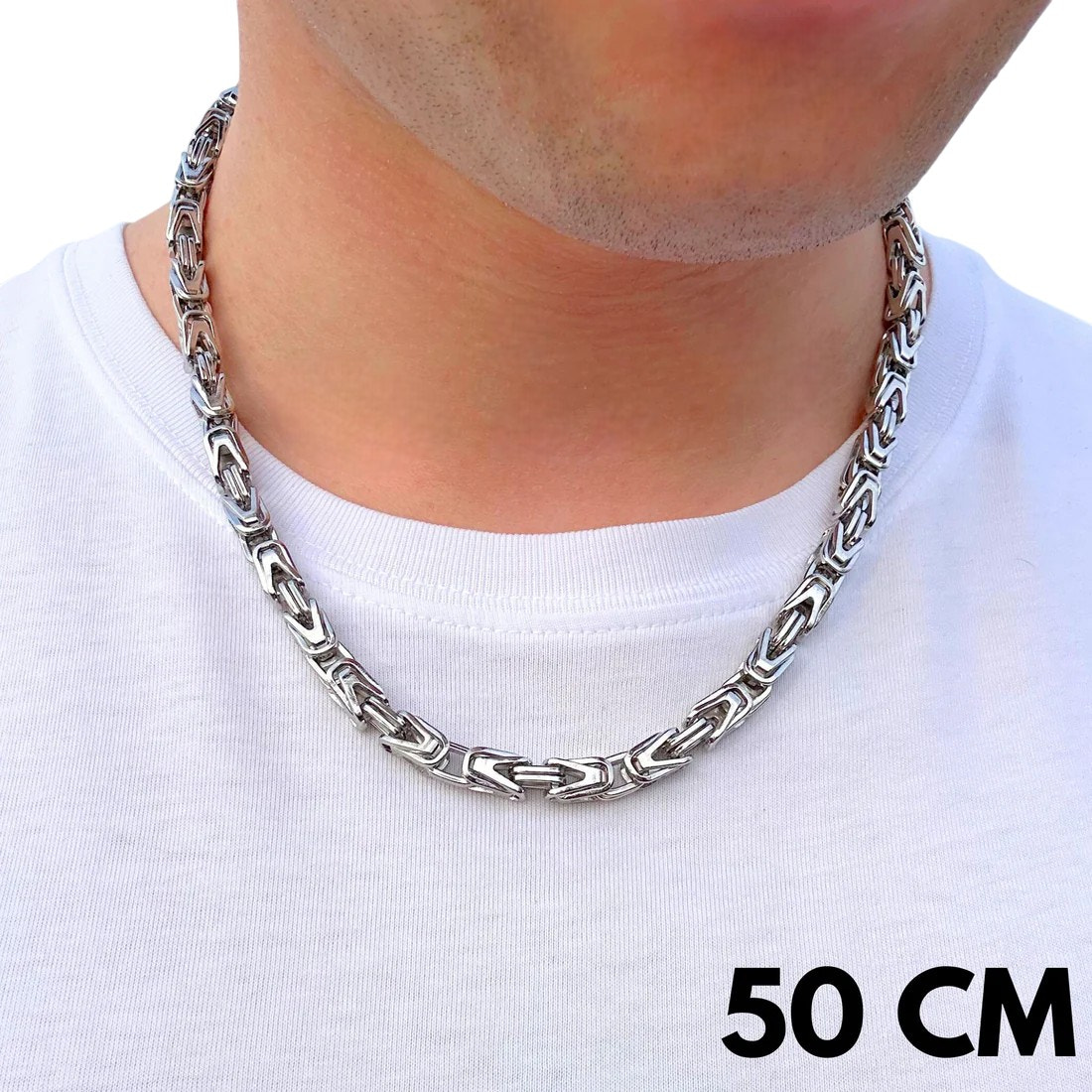 Silverchain in a cesarean plexusMeasuring 6mm wide, this piece combines opulent form with technical precision. This distinctive, dense weave boasts a unique structure that was once reserved for rulers and elites.Steel constructionIt gives it a cool, elegant finish and makes it a perfect match for both everyday outfits and more formal settings. It's a choice for those who value solidity, detail, and a timeless style with character.