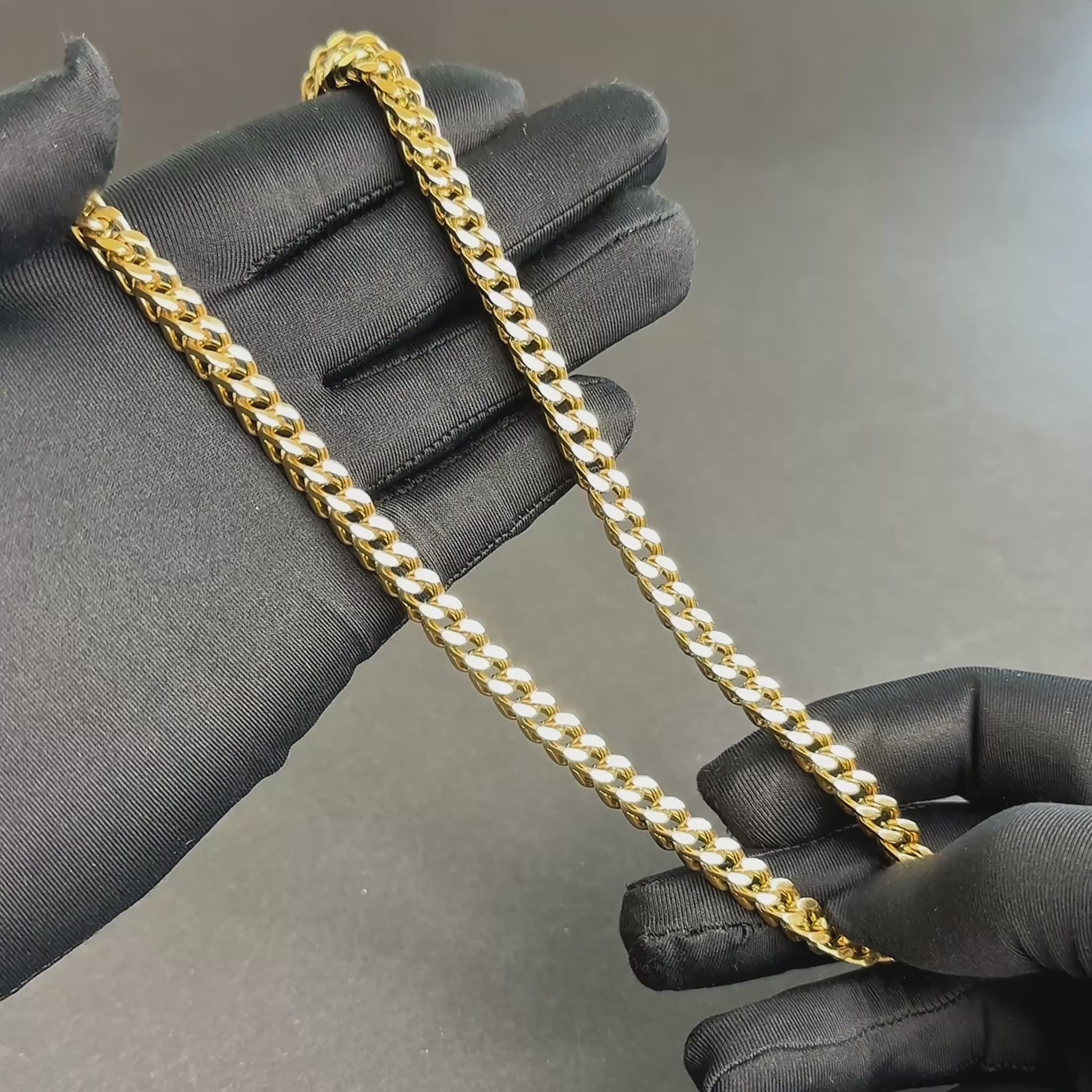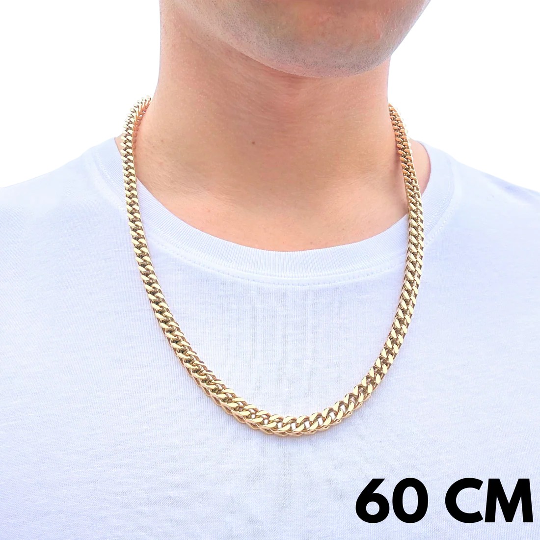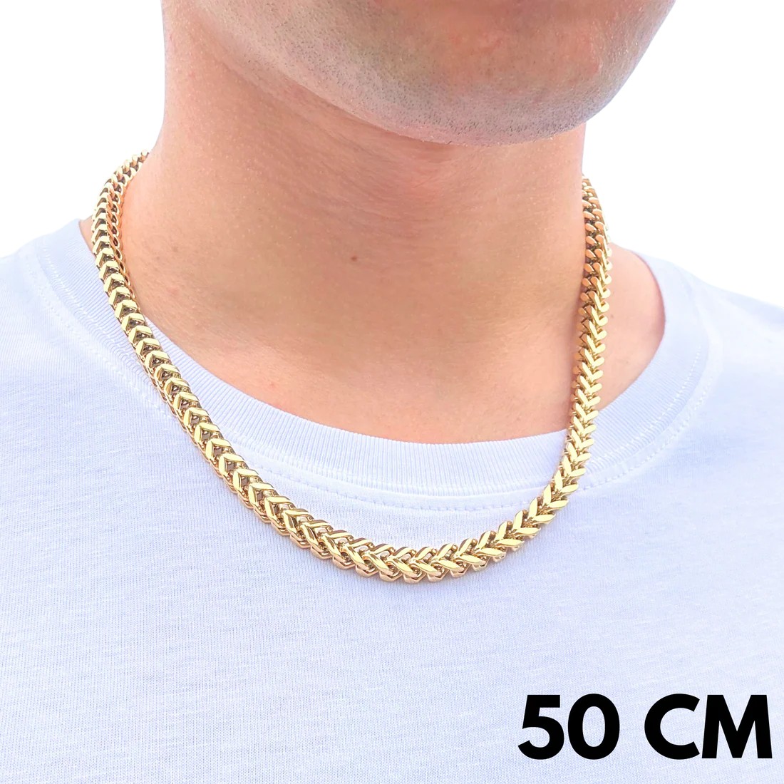 A more substantial version of the gold-tone Franco chain – 6 mm wide – strikes the perfect balance between boldness and elegance. The dense, solid weave gives the piece an exclusive look. A great choice for both everyday wear and special occasions.