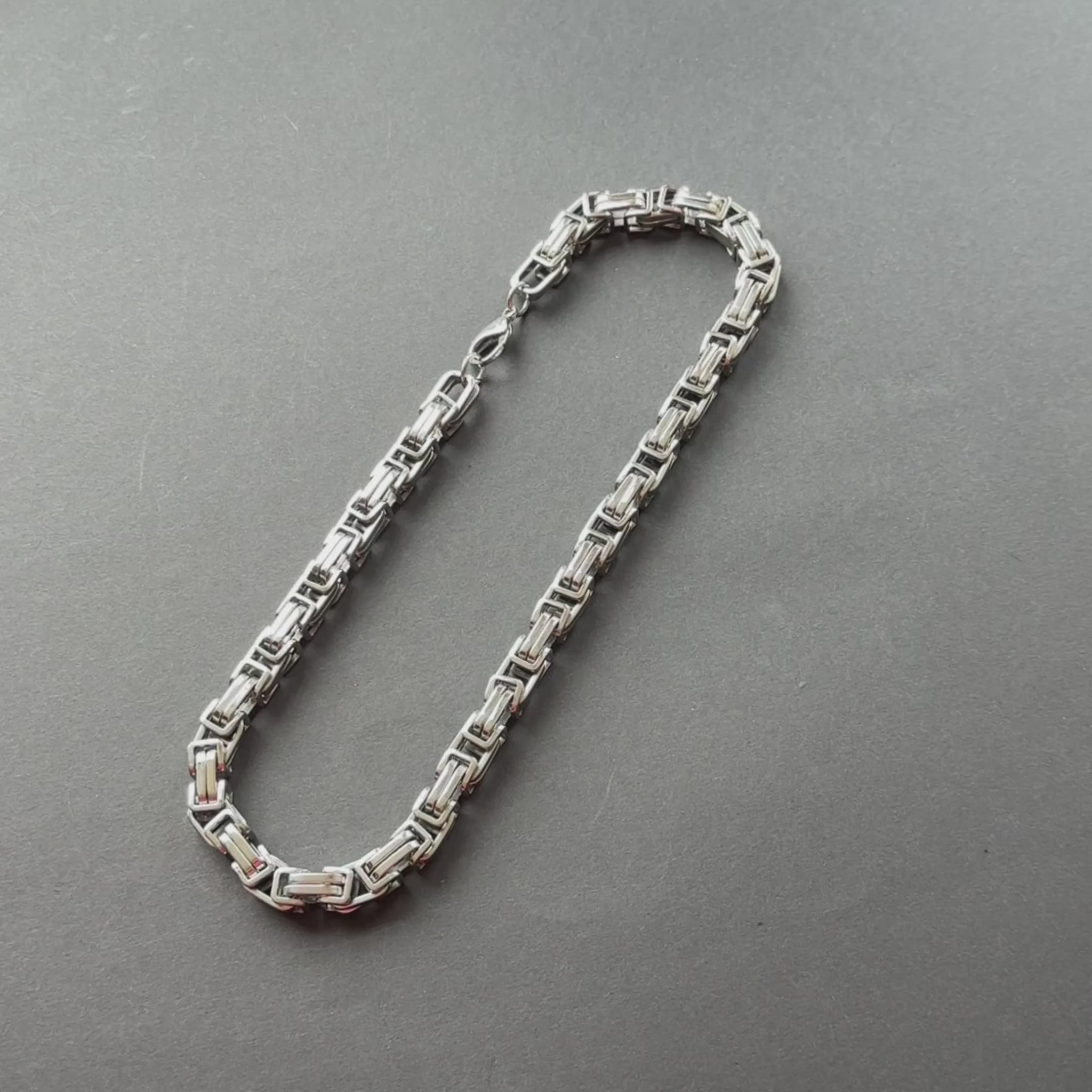 Royal weave chain12 mm wide insilver finishThis is a strong, prestigious piece of jewelry inspired by ancient jewelry craftsmanship. This weave, associated with monarchs and elites, symbolizes durability, strength, and high-standard elegance. Silver-tone steel gives it a cool, modern look that complements both everyday outfits and glamorous evening ensembles. The 12 mm model strikes the perfect balance between substantial form and wearability—for those who want to stand out, yet maintain a touch of class.