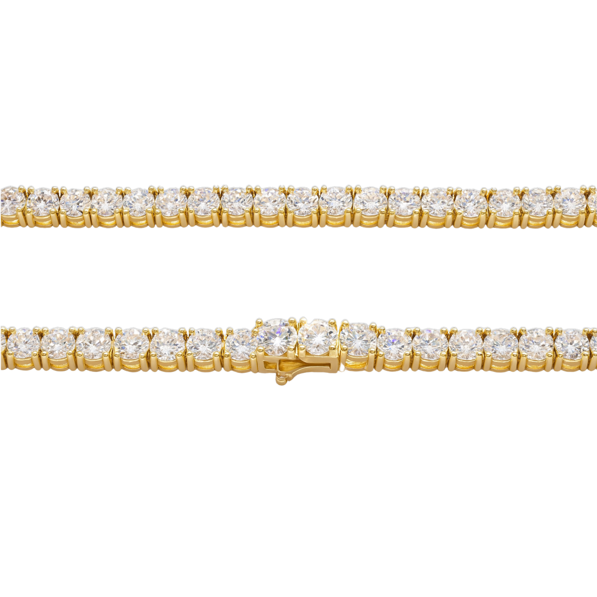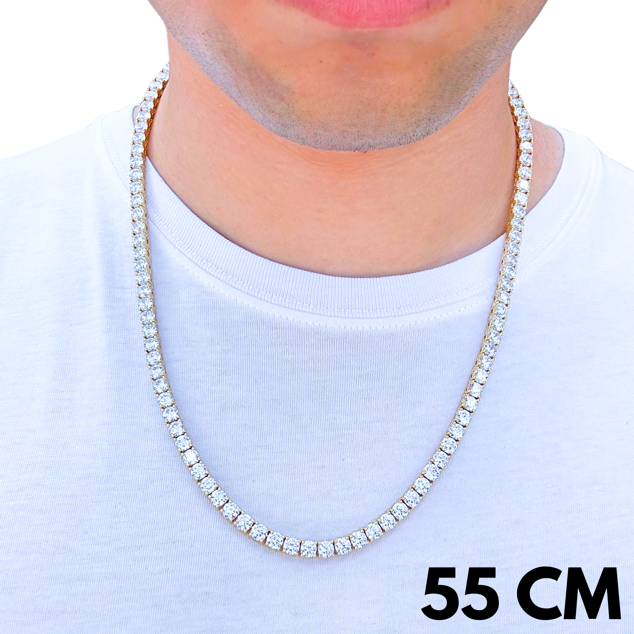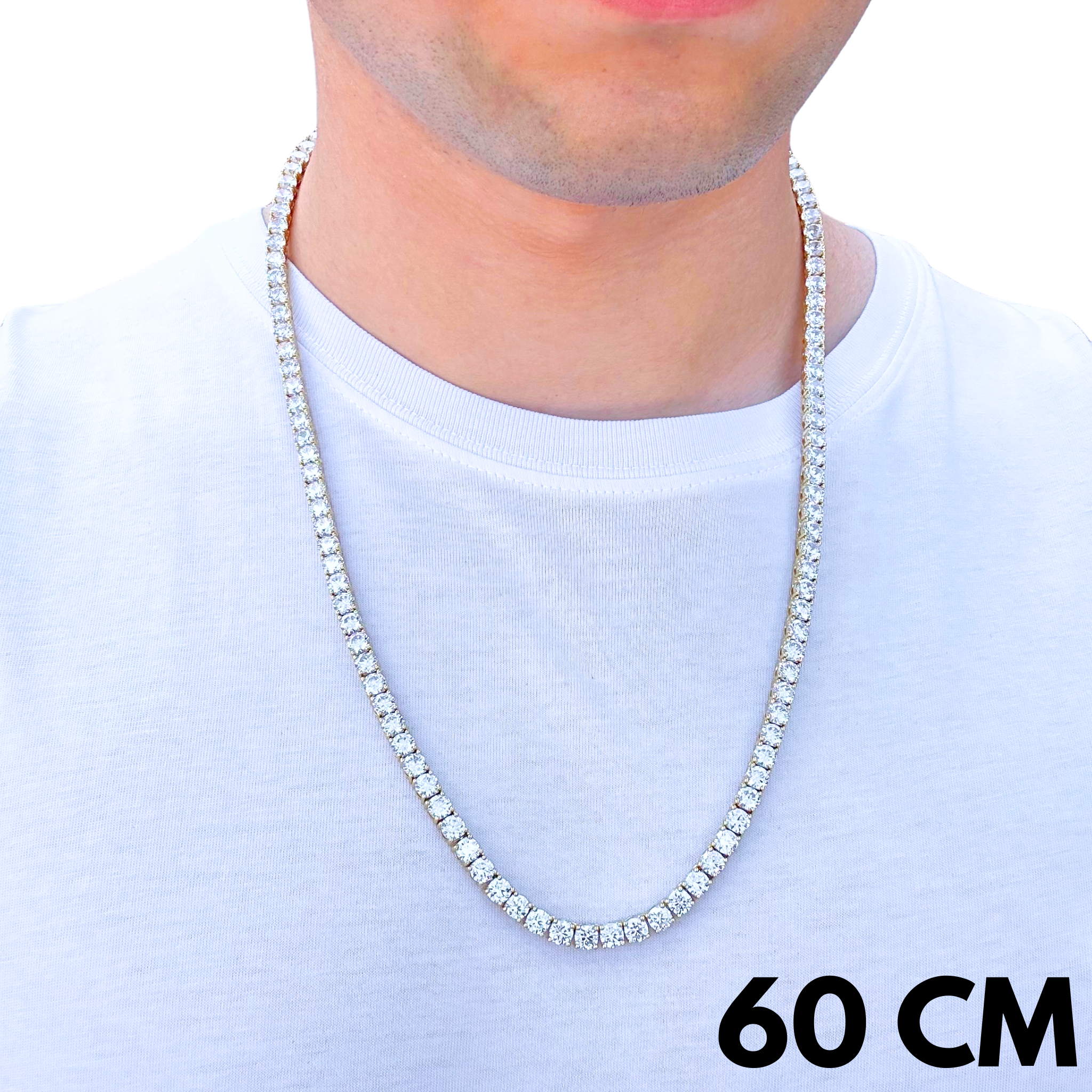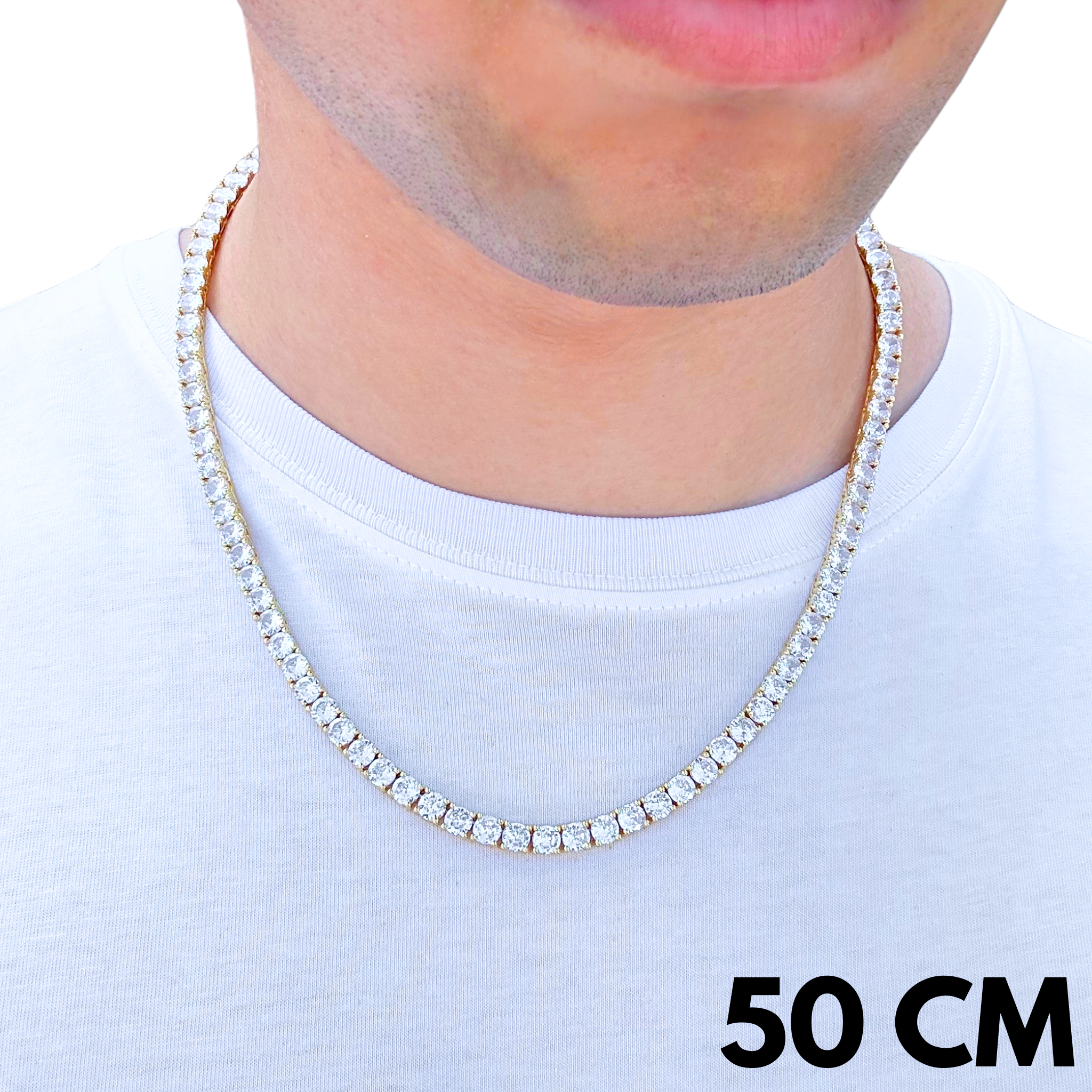 GoldenTennis chain5mm wide, it's synonymous with style and prestige. Set with a row of sparkling cubic zirconias, it catches the eye and catches light from every angle. This classic design, known from red carpets and music videos, perfectly combines luxury with a modern fashion statement.gold coatingIt adds elegance and a deep shine. It's the perfect choice for evening wear, stage styling, or for anyone who wants to stand out with class.
