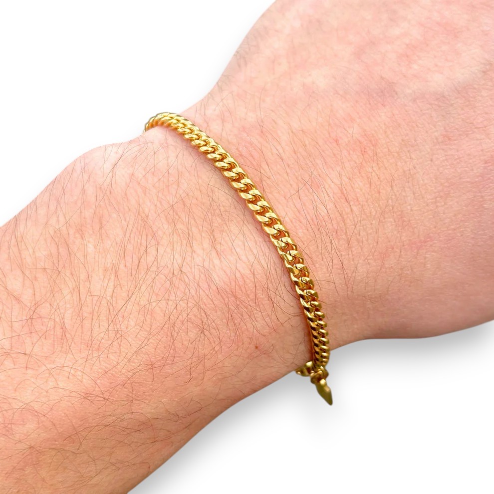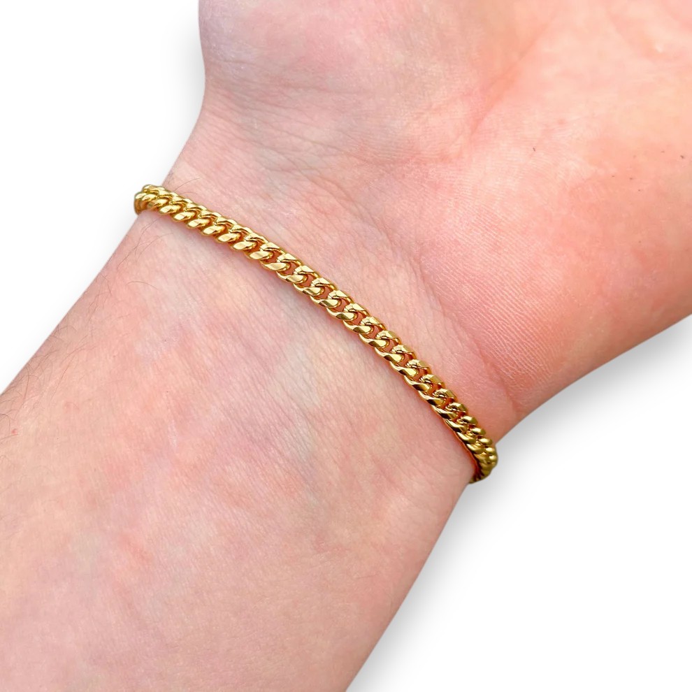 Cuban Złota 4 mm to subtelny, złoty łańcuch w formie bransoletki. Delikatny, ale wyrazisty dzięki kultowemu splotowi.