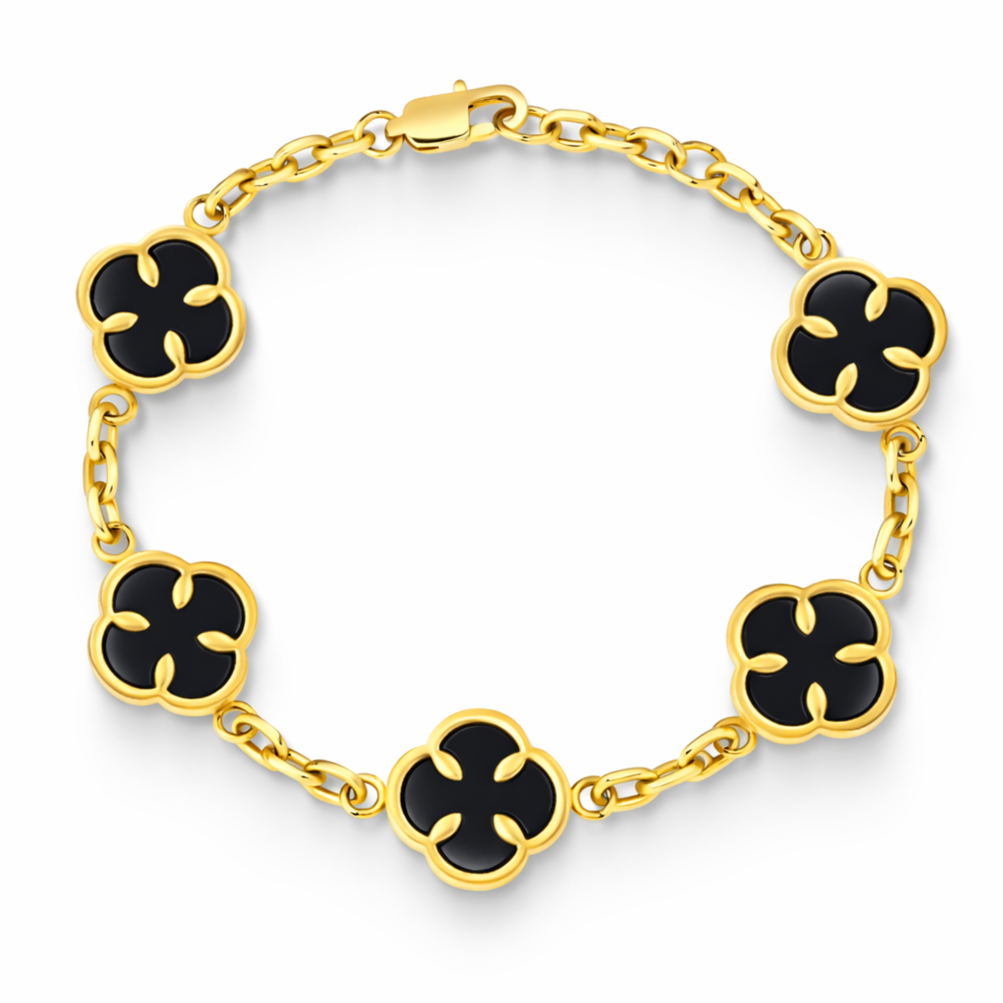 Bransoletka Koniczyna z Onyksem Damska Czarna Złota