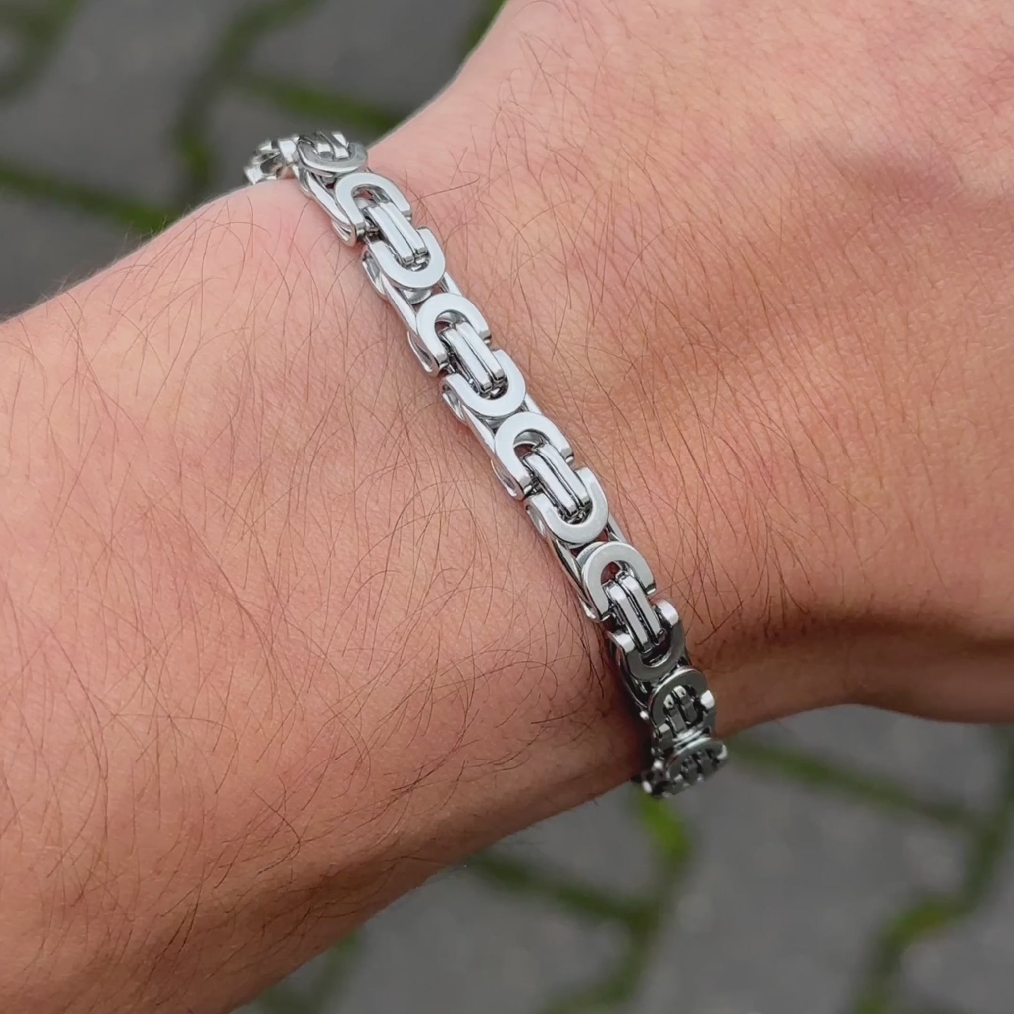 Bransoletka Szlachecka w kolorze białego złota zachwyca gęstym, misternym splotem, który wygląda elegancko i szlachetnie. To biżuteria pełna charakteru, idealna dla osób ceniących subtelną, ale wyrazistą formę.