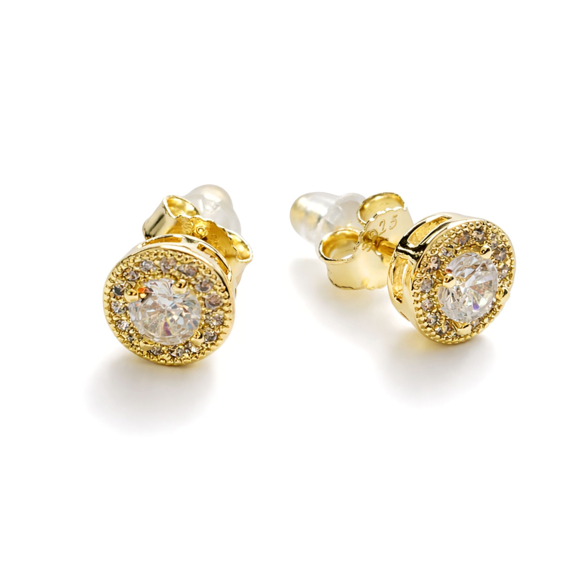 Eleganckie kolczyki wykonane z wysokiej jakości srebra próby S925, pozłacane i ozdobione cyrkonią o precyzyjnym szlifie. Centralny kamień został subtelnie otoczony drobnymi, jasnymi cyrkoniami, które pięknie odbijają światło.