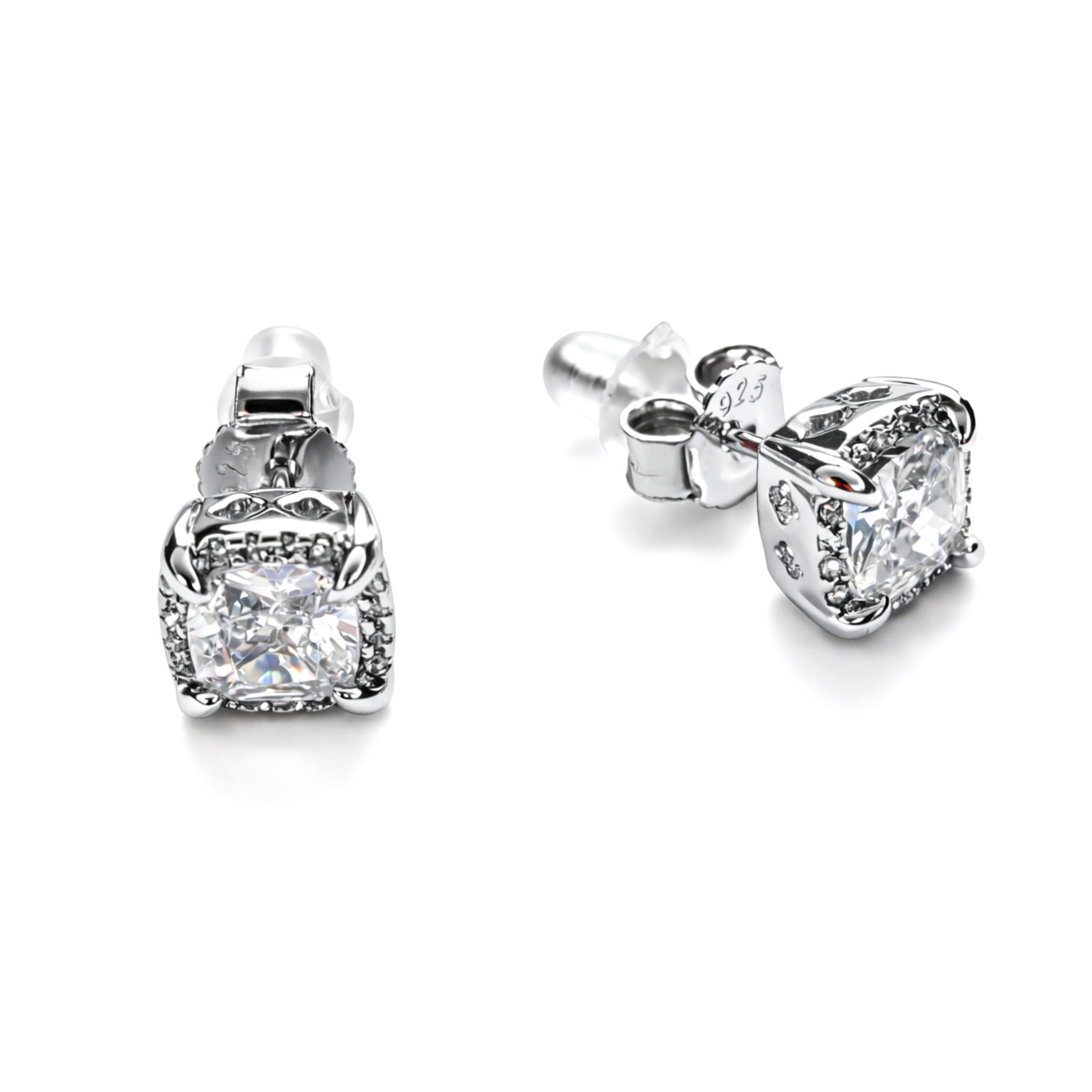 Eleganckie kolczyki wykonane z wysokiej jakości srebra próby S925, ozdobione cyrkonią o precyzyjnym szlifie. Centralny kamień został subtelnie otoczony drobnymi, jasnymi cyrkoniami, które pięknie odbijają światło.
