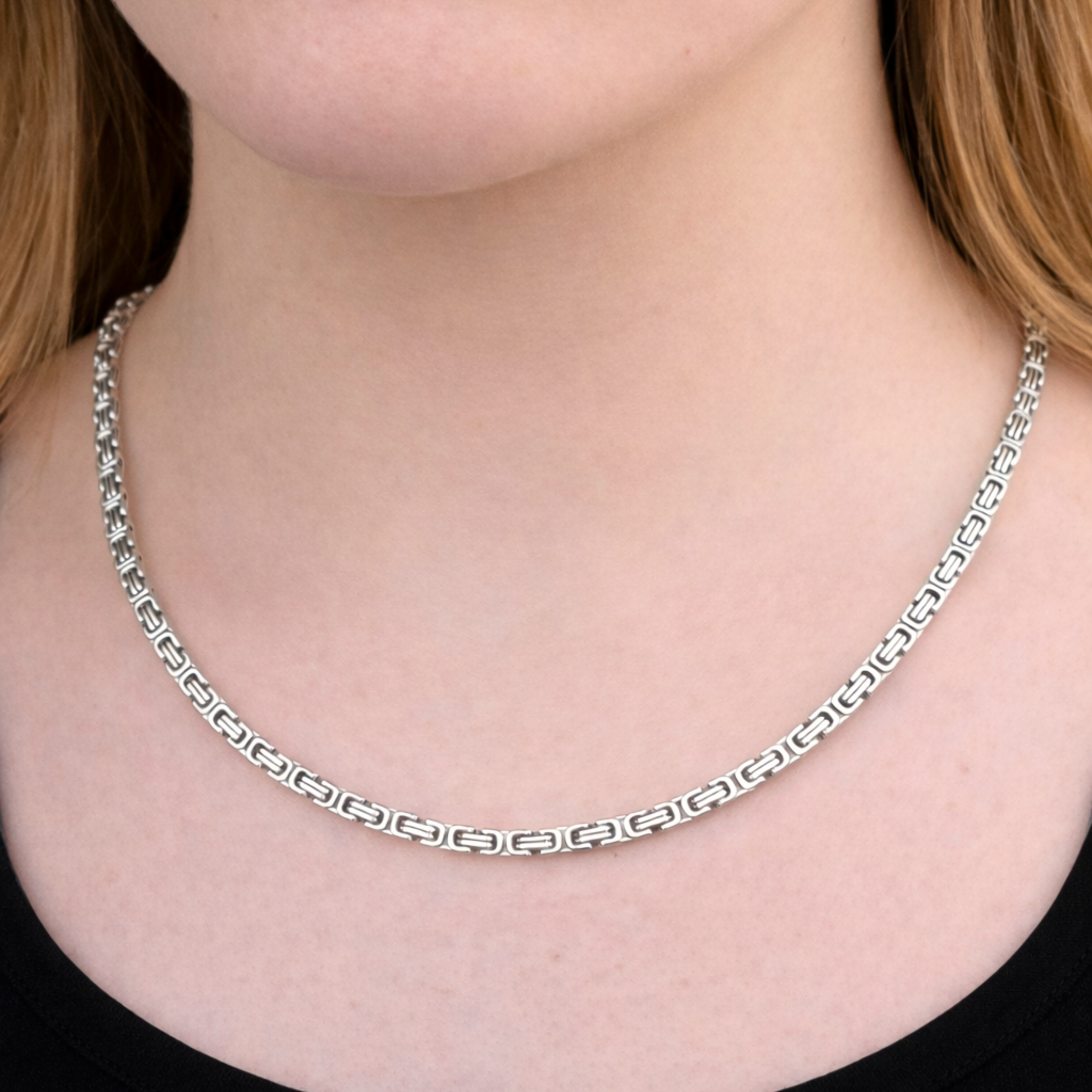 Królewski 4 mm to popularny i uniwersalny splot. Smukła szerokość sprawia, że wygląda subtelnie, a srebrny połysk dodaje mu elegancji i prestiżu. To biżuteria idealna dla osób, które cenią ozdobne detale w nowoczesnej odsłonie.