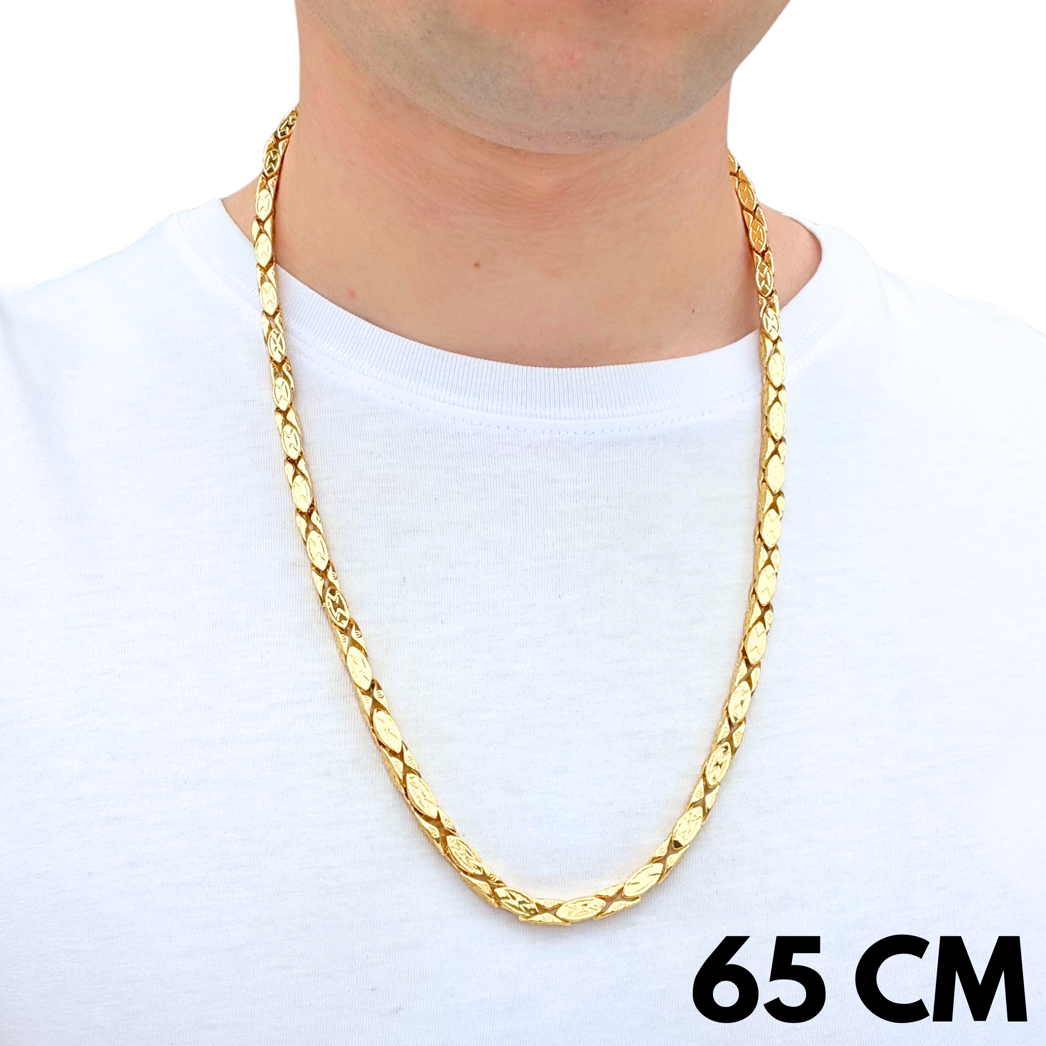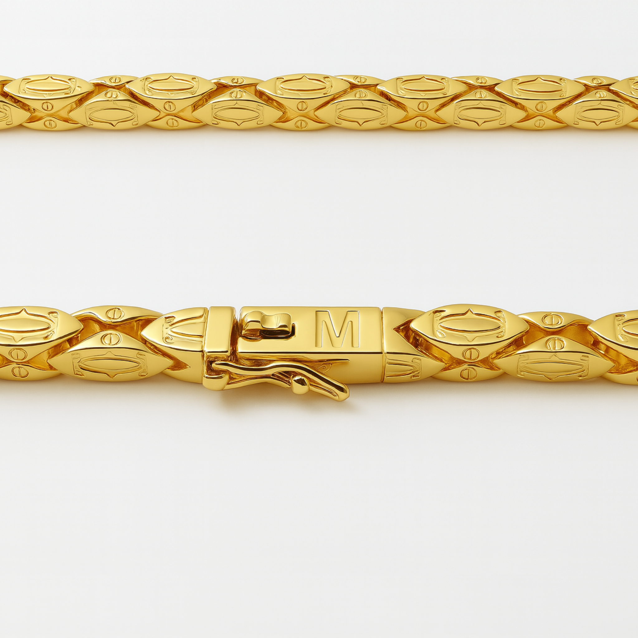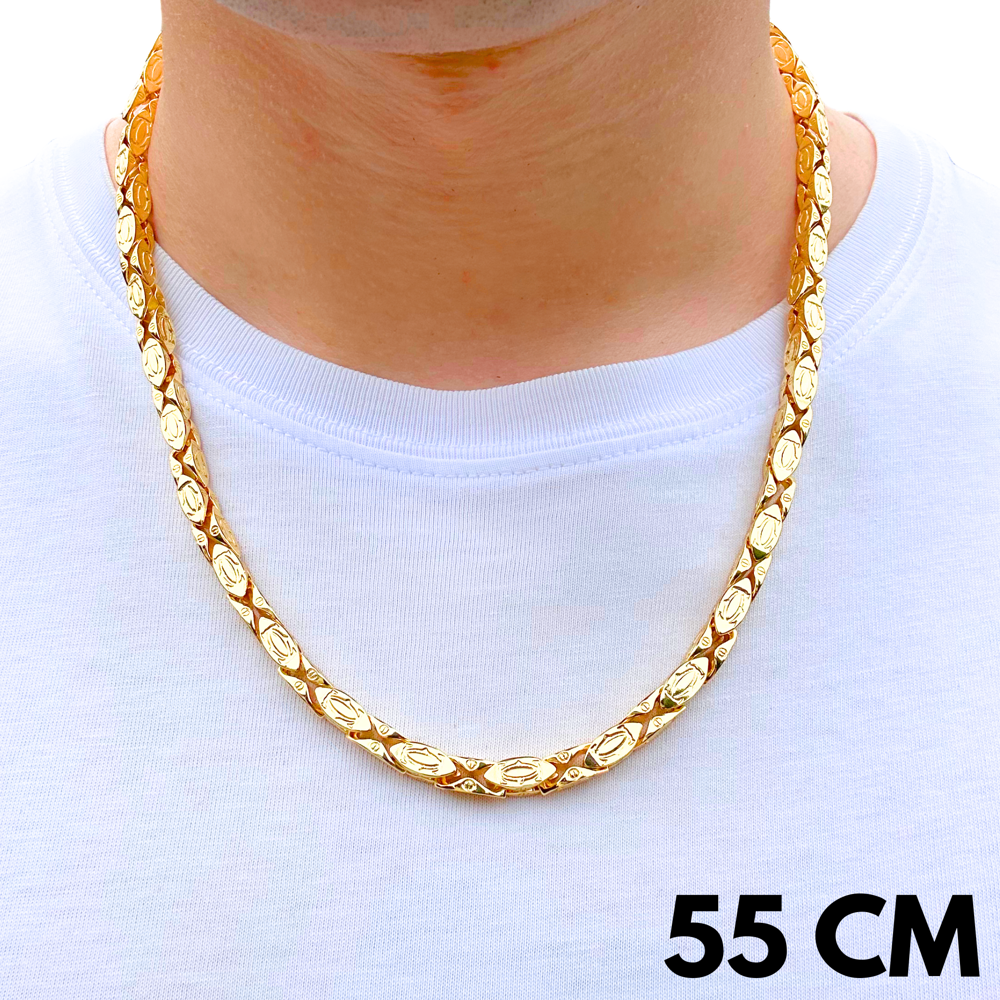 Magnacki Złoty to biżuteria o szlachetnym, nieco monumentalnym charakterze. Szerokość 5 mm i oryginalny splot nadają mu elegancji, a złote wykończenie podkreśla luksusowy charakter dodatku. To łańcuch, który świetnie sprawdzi się jako symbol prestiżu i mocnego stylu. Idealny dla mężczyzn, którzy szukają wyrazistych, ale wciąż eleganckich detali.