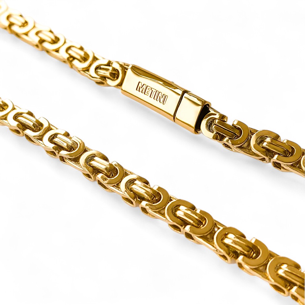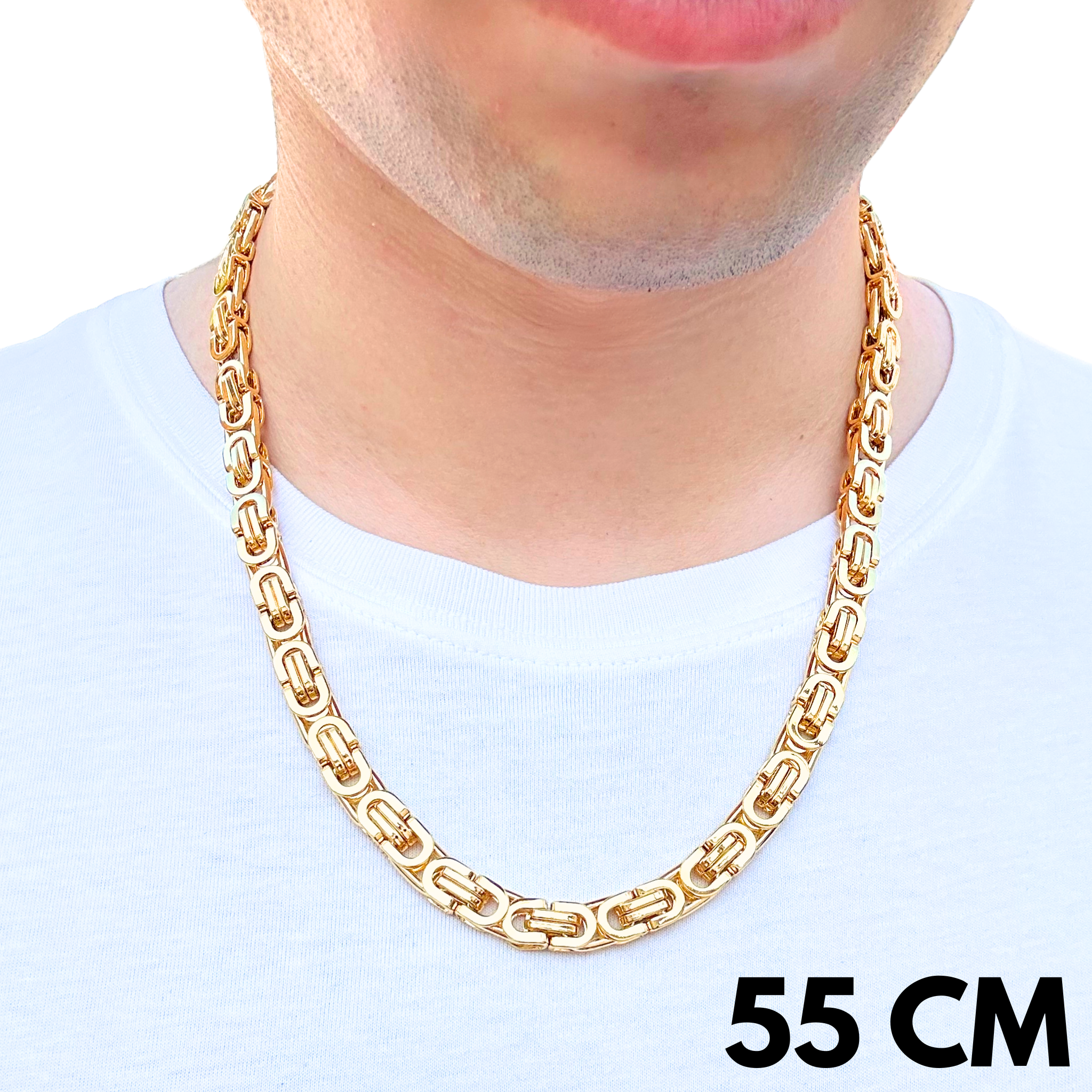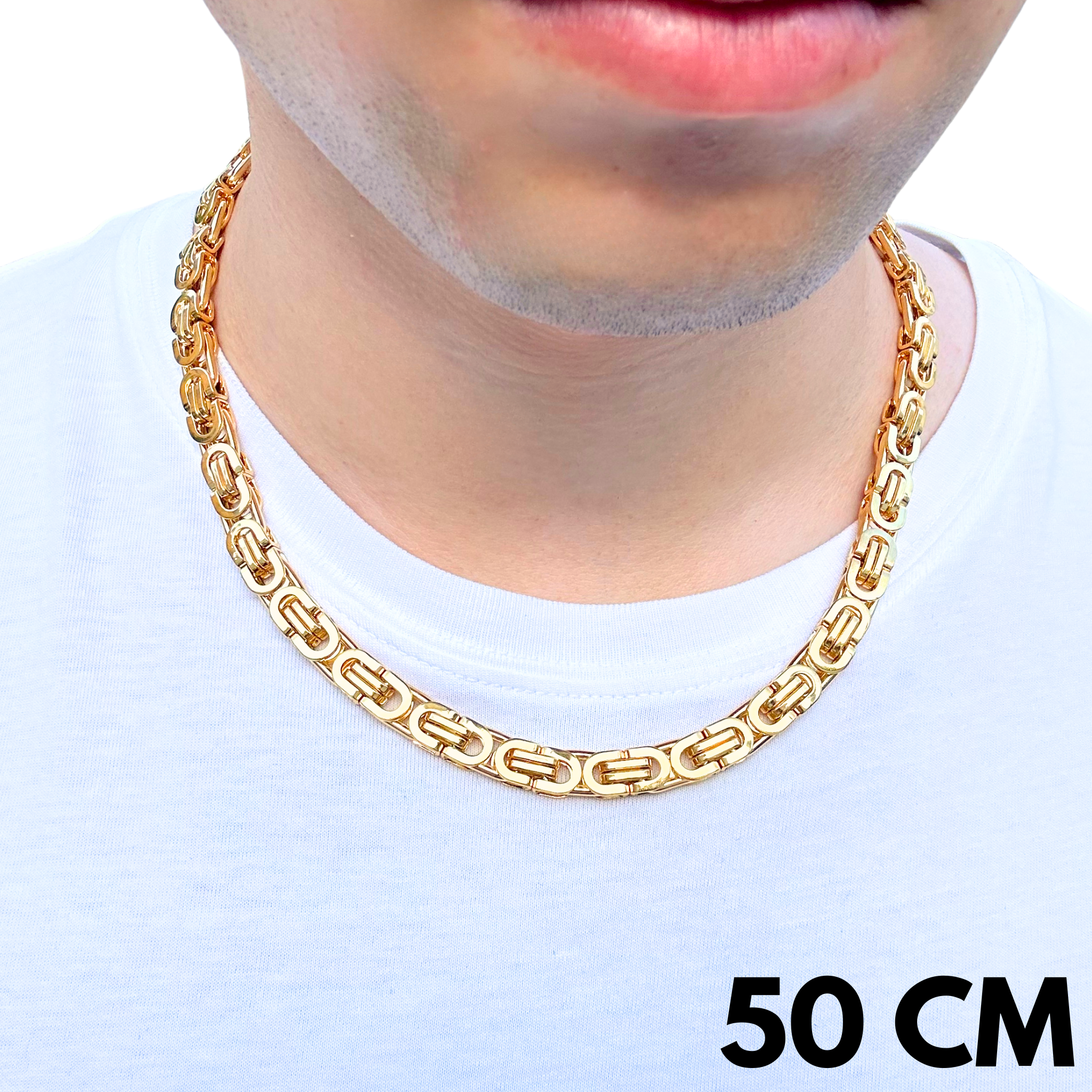 Szlachecki Złoty 8 mm to majestatyczny łańcuch o ozdobnym splocie, którego złoty blask symbolizuje luksus i pewność siebie. To model wyrazisty, ale wciąż elegancki, doskonały do podkreślenia wyjątkowych okazji i stylizacji pełnych klasy.