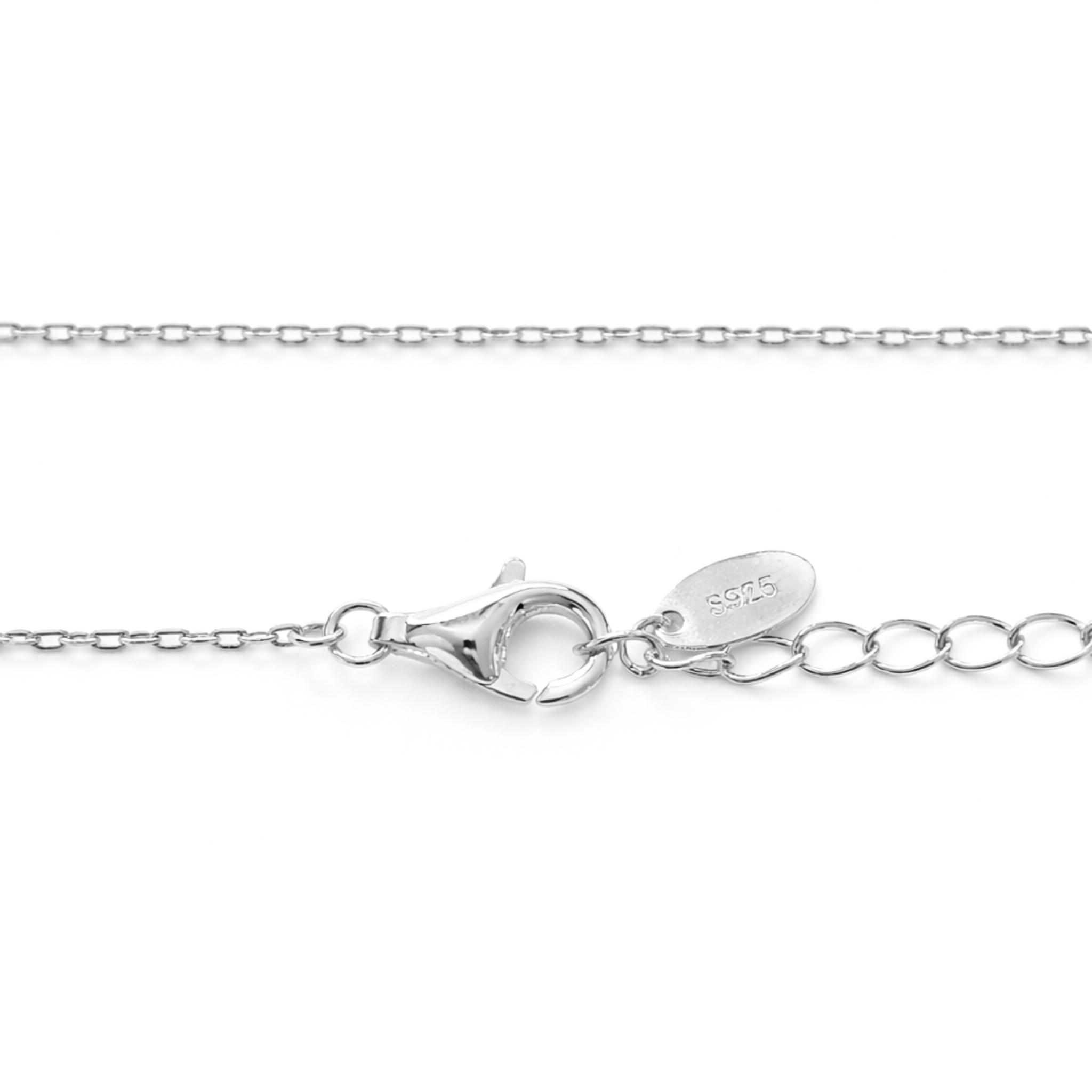 Ten wyjątkowy naszyjnik łączy w sobie subtelną elegancję i luksusowy blask, tworząc biżuterię idealną na każdą okazję. Zawieszka została wykonana ze srebra S925 i pokryta białym złotem, co nadaje jej chłodny, szlachetny połysk oraz zwiększa trwałość i odporność na zmatowienie.
