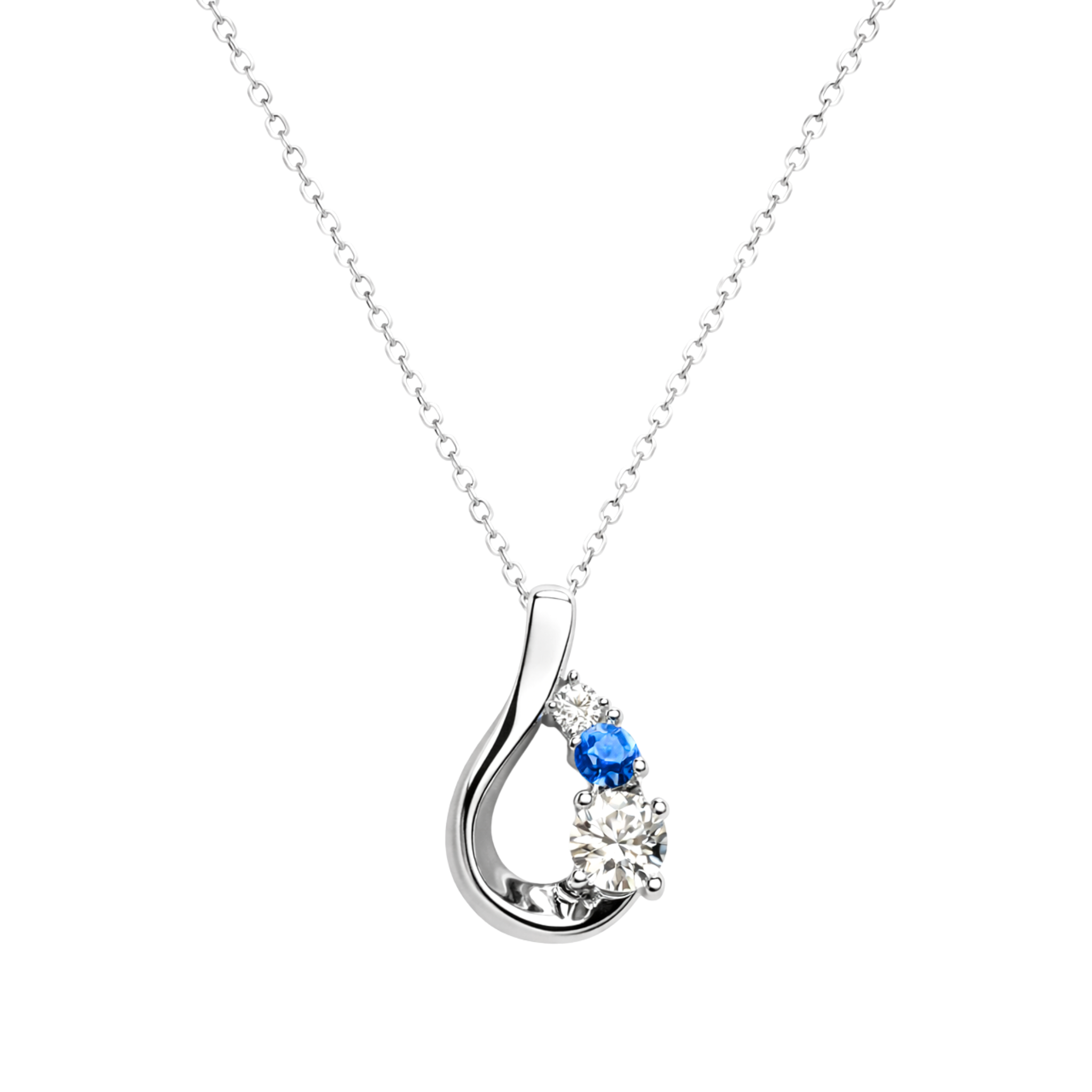 Naszyjnik Niebieska Kropla z Moissanitem S925 Białe Złoto Damski