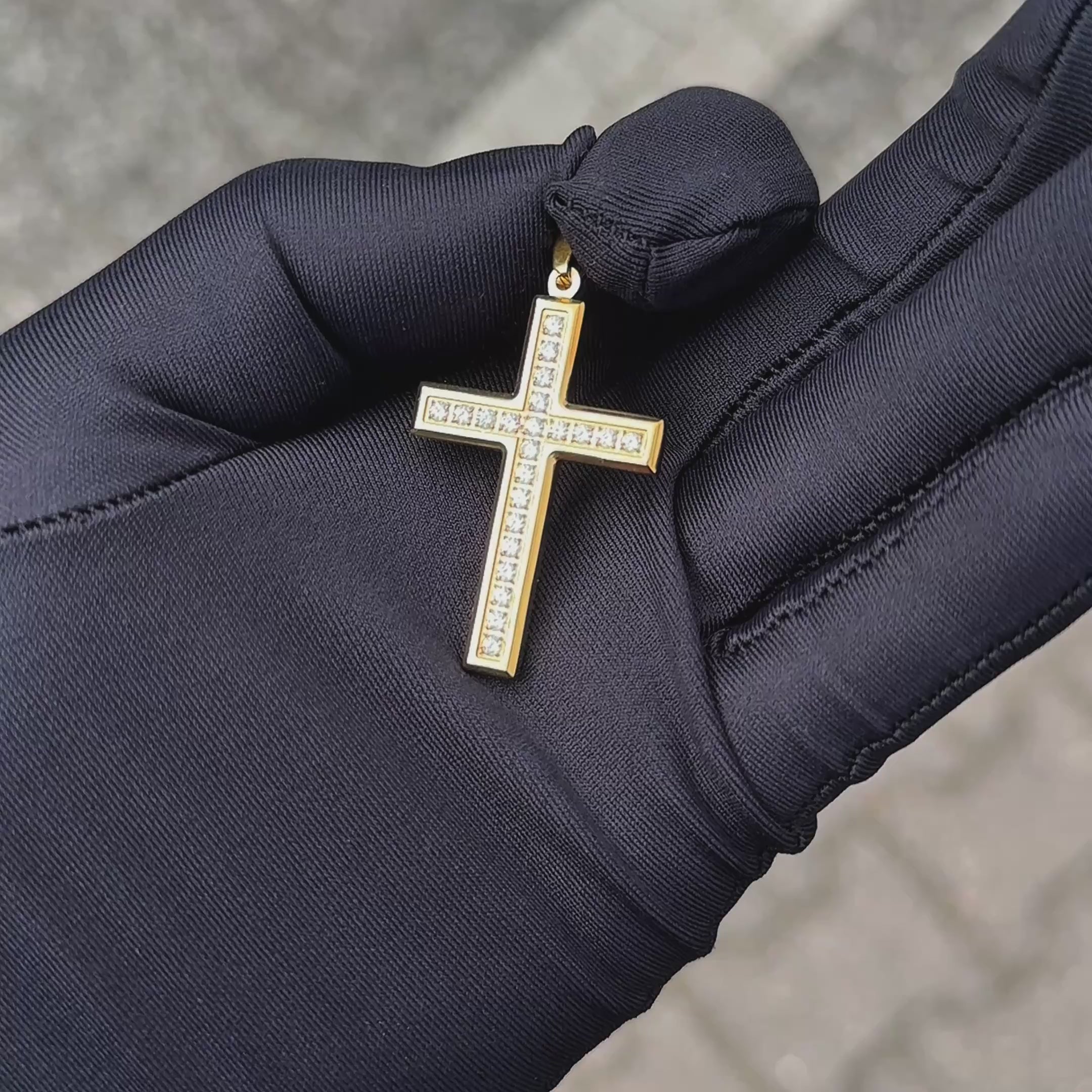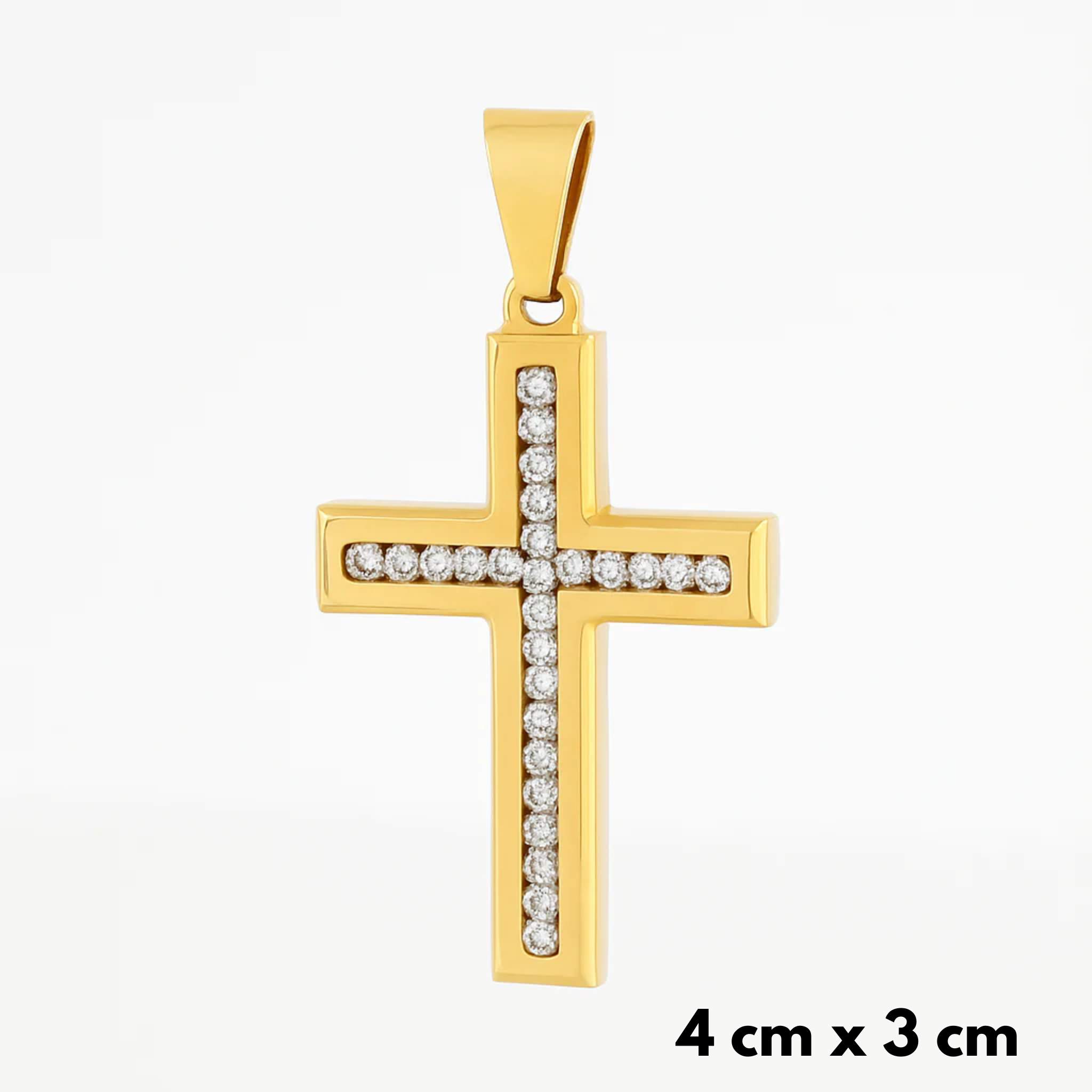 Elegant Cross to zawieszka stworzona dla miłośników klasyki i subtelnej elegancji. Jej proporcjonalna forma w połączeniu ze złotym połyskiem sprawiają, że wygląda stylowo i ponadczasowo. To idealny wybór dla osób, które cenią wyrafinowaną prostotę.