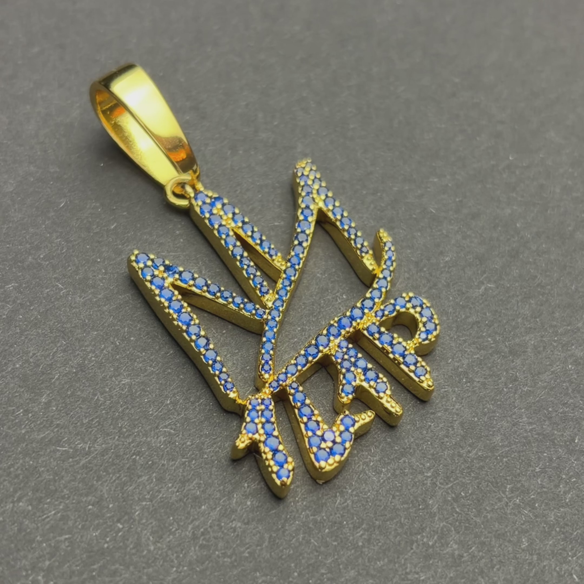 Dynamiczna forma napisu podkreśla energię ruchu i determinację. To zawieszka dla osób, które nie stoją w miejscu.