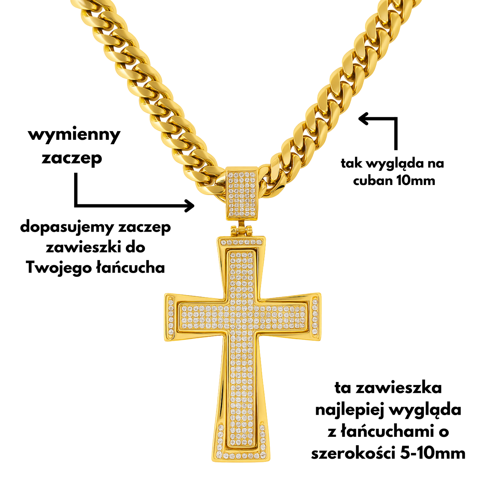 Imperial Cross to potężna zawieszka o majestatycznym charakterze, której wyraziste proporcje robią ogromne wrażenie. Mocne ramiona i złoty blask symbolizują siłę, władzę i odwagę. To model stworzony dla mężczyzn, którzy lubią przyciągać spojrzenia i podkreślać swój wyjątkowy styl. Doskonały wybór do odważnych stylizacji, które wymagają mocnego akcentu biżuteryjnego.