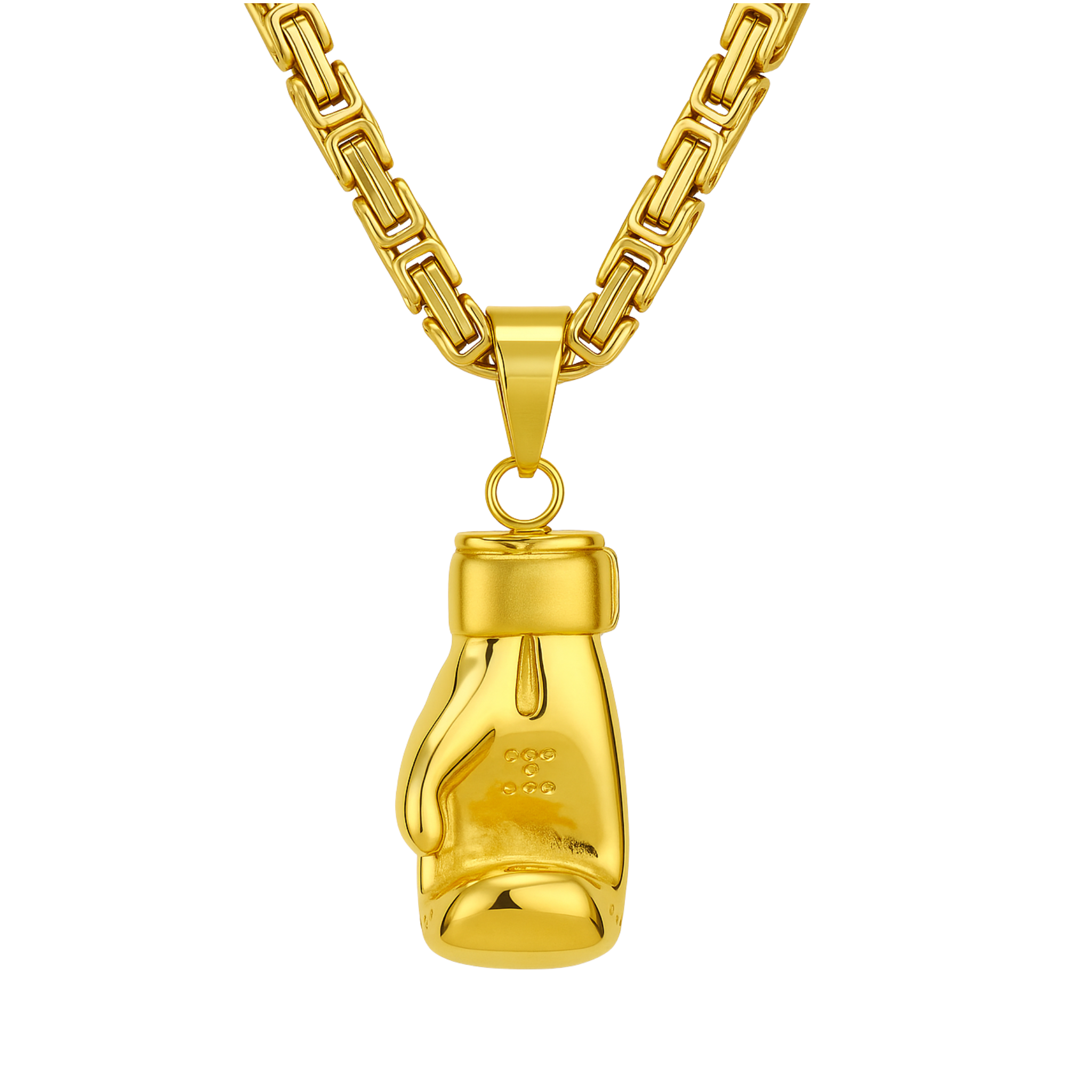 Ta zawieszka w kształcie rękawicy bokserskiej to symbol siły, odwagi i nieustępliwości. Pozłacana złotem 18k, lśni niczym trofeum – przypomina o każdym zwycięstwie, które przyszło po walce, i o każdym ciosie, który trzeba było przyjąć, by iść dalej. Jest masywna, więc idealnie komponuje się z większymi łańcuchami.