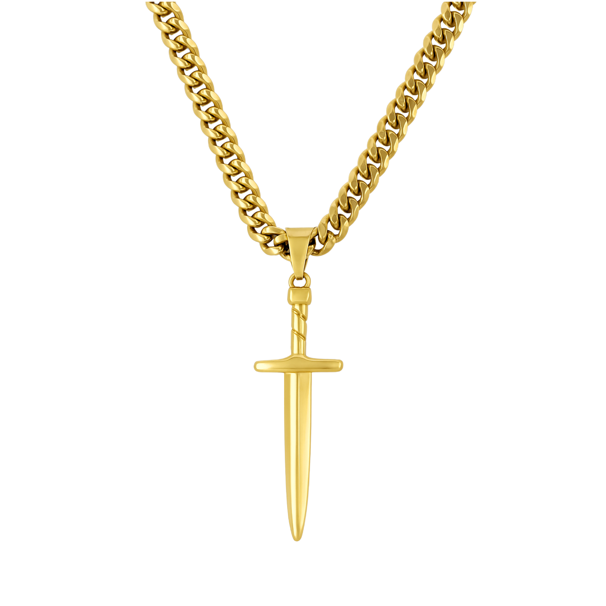 Zawieszka Sword Złota to biżuteria, która łączy elegancję i siłę w minimalistycznej formie. Smukły kształt miecza symbolizuje odwagę, honor i determinację, a jego złote wykończenie nadaje całości luksusowego charakteru. Delikatne detale rękojeści i idealnie wypolerowana powierzchnia sprawiają, że zawieszka prezentuje się szlachetnie i stylowo. To wyjątkowy dodatek dla osób, które cenią mocny przekaz i klasyczny design. Doskonale komponuje się z łańcuchami o prostych splotach, podkreślając indywidualny charakter i pewność siebie noszącego.