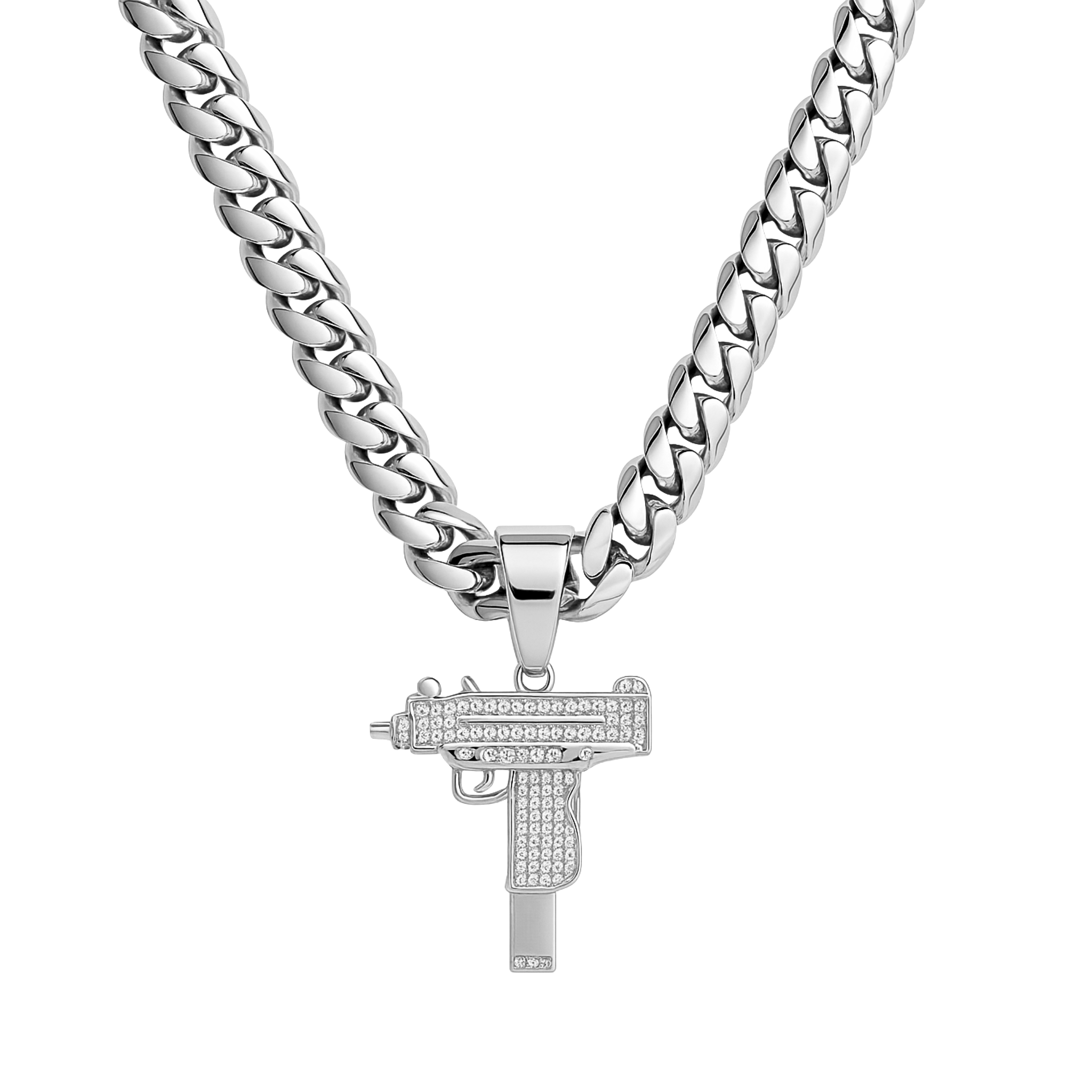 Zawieszka UZI Białe Złoto ulepszy Twój OUTFIT!