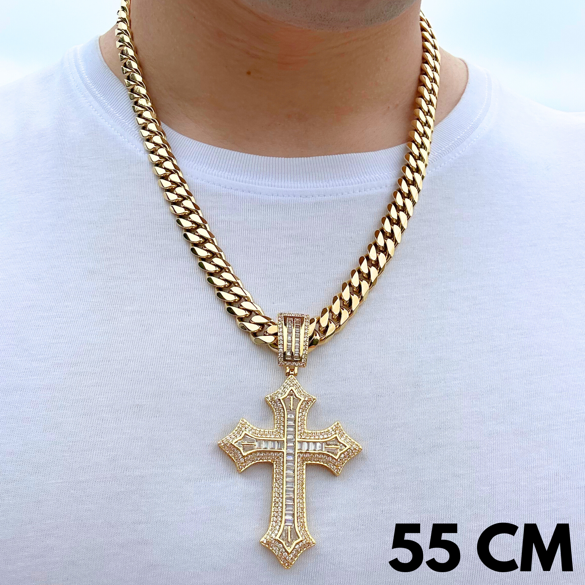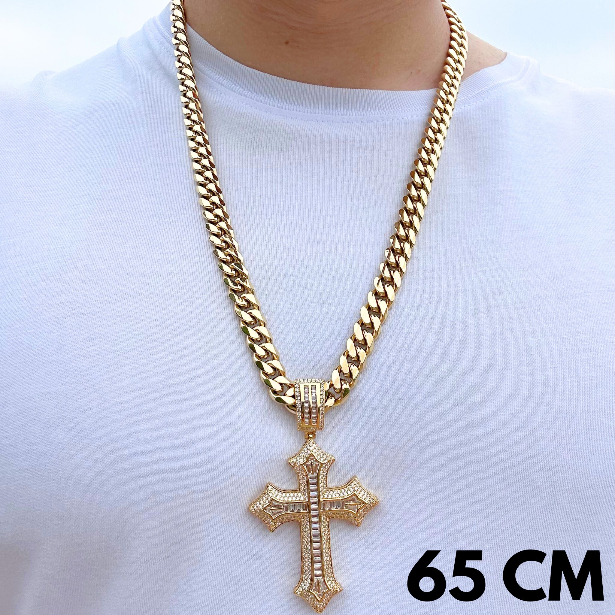 ZESTAW - Cuban Złoty 10mm + Zawieszka Classic Cross Złota