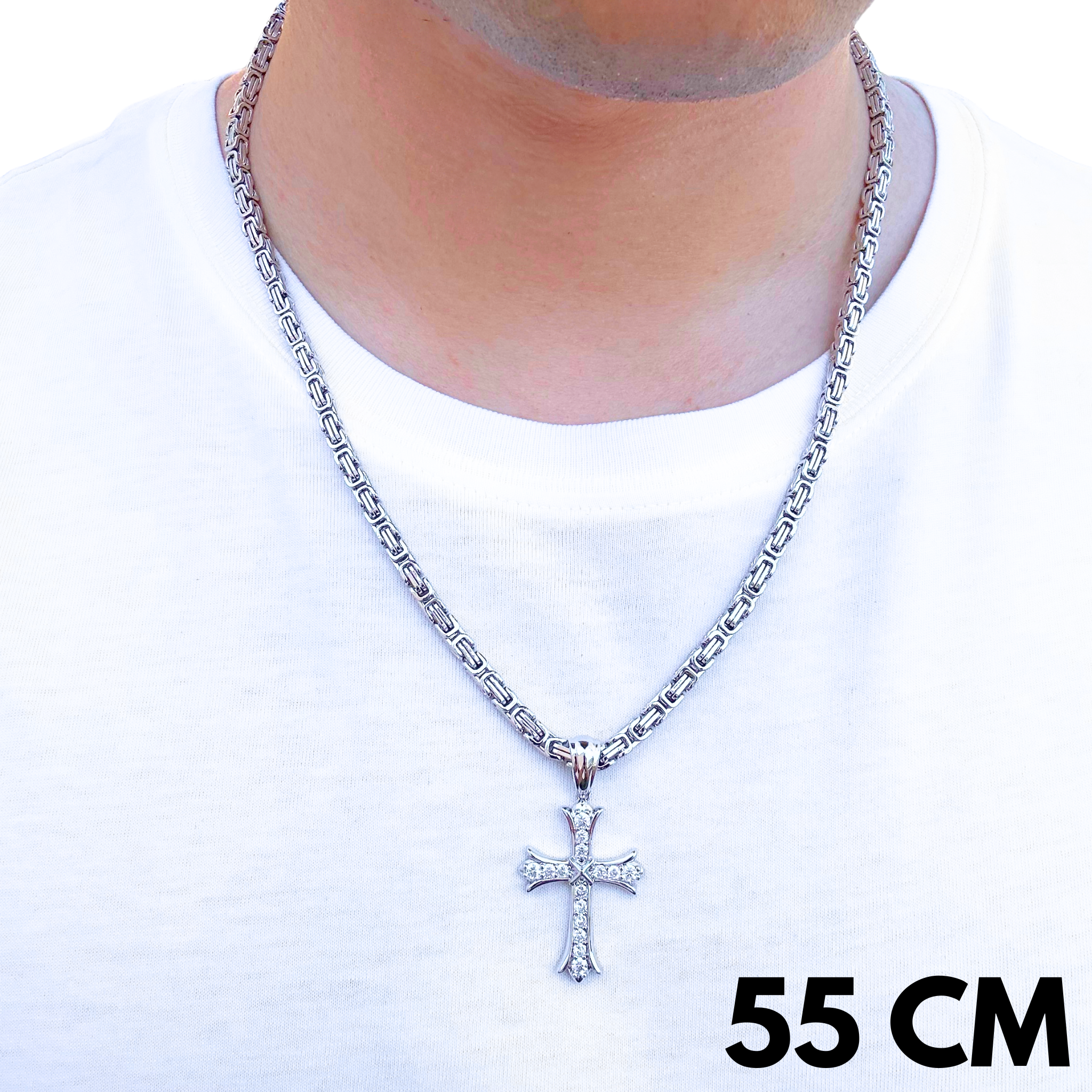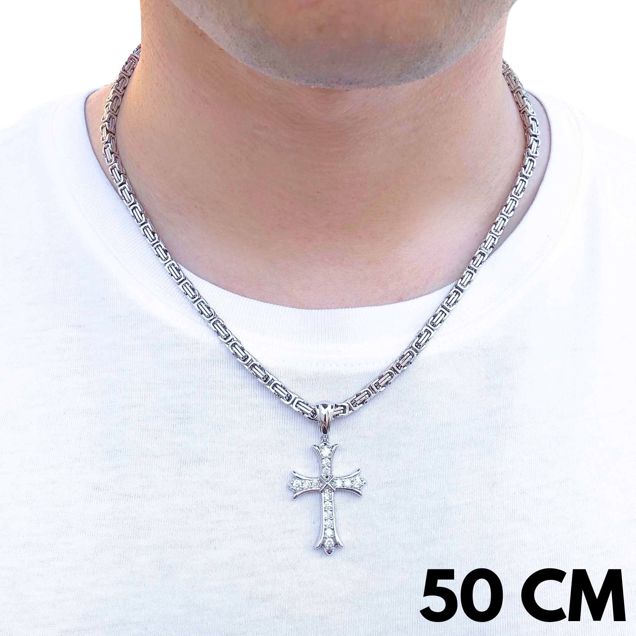 ZESTAW - Królewski 4mm Białe Złoto + Zawieszka Grand Cross Białe Złoto ulepszy Twój OUTFIT!