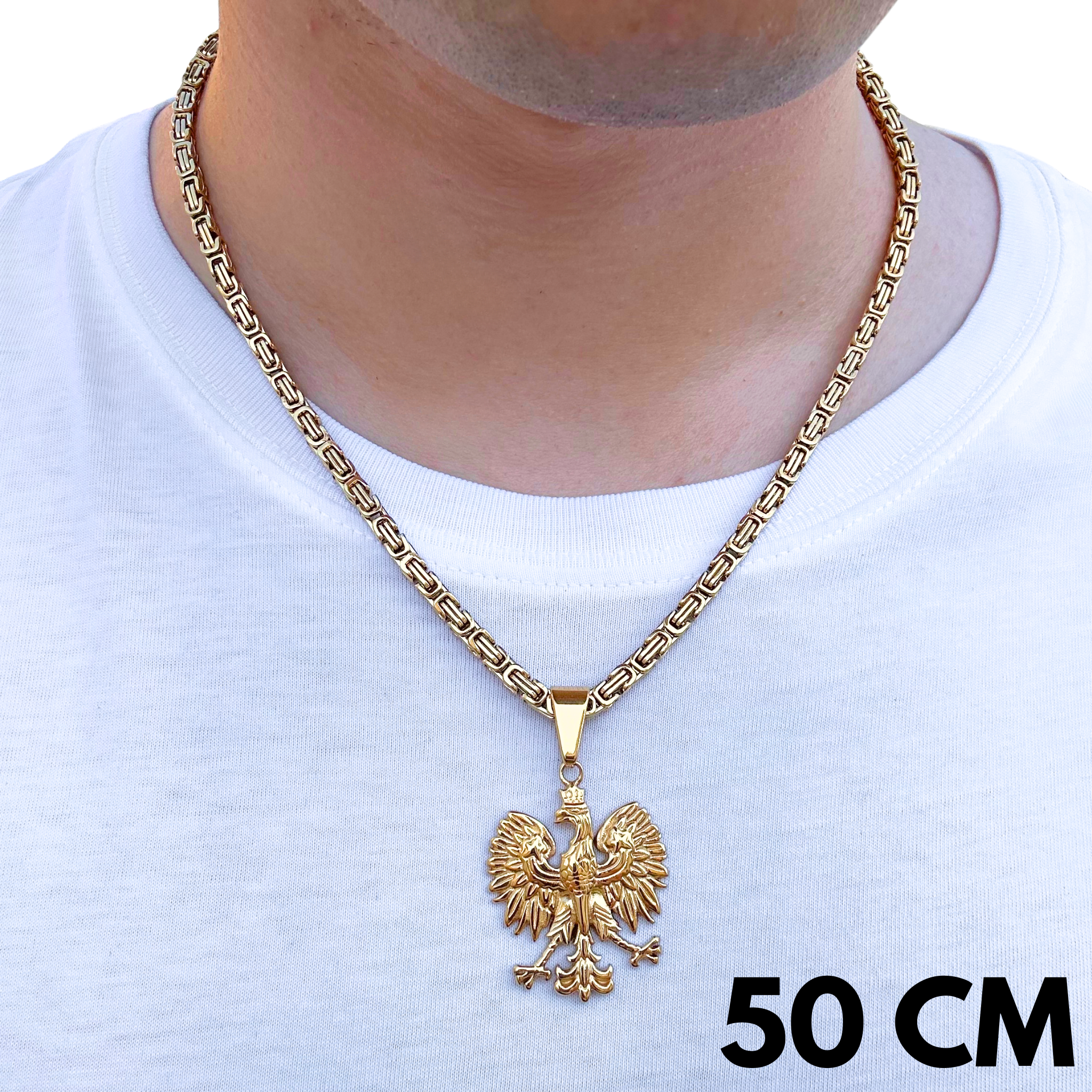 ZESTAW - Królewski Złoty 4mm + Zawieszka Orzeł Złota